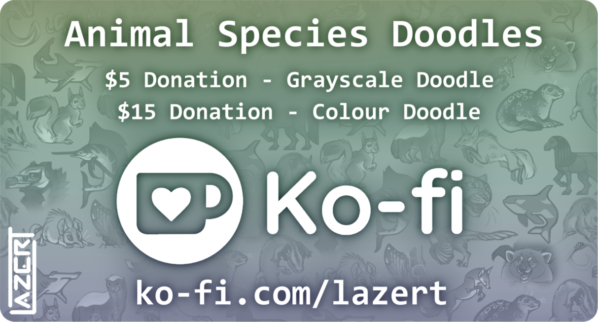 ▪ $15 Donations get a Colour Doodle of any animal species of your choiceJust include species name in the donation message!Donate here▪ Doodles are usually completed within about a week, but can take anywhere between 1 day and 1 month